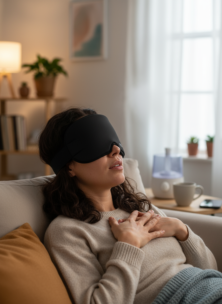 - Slap af og lad den arbejde – Lad CEPHALY massere og varme i 10–20 minutter. Træk vejret dybt og slap af, mens spændingerne løsnes.
